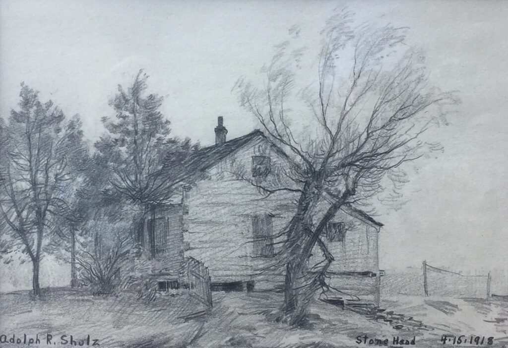 Adolph R. Shulz Stone Head Sold Graphite on paper 7 x 10 inches