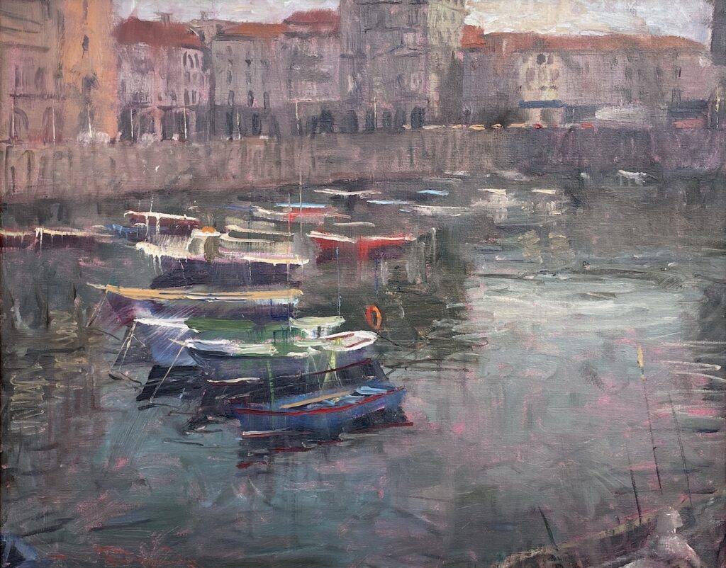 Charles Warren Mundy Italian Fishing Boats Oil on linen 12 x 12 inches