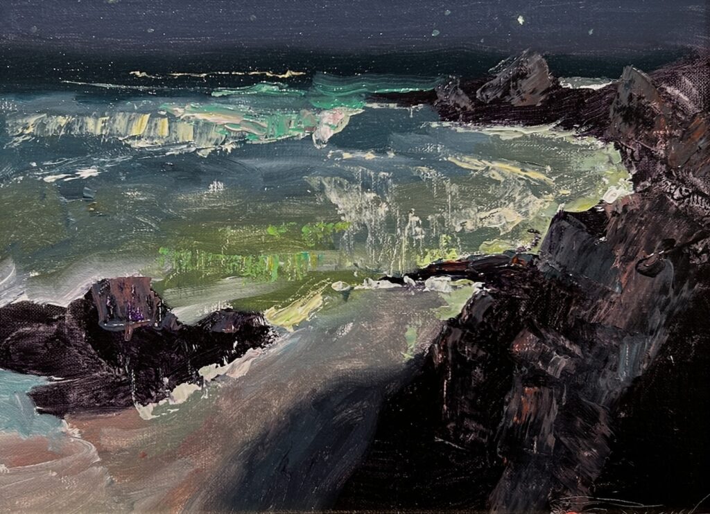 Charles Warren Mundy Full Moon Imaginary Seascape Oil on linen 6 x 8 inches