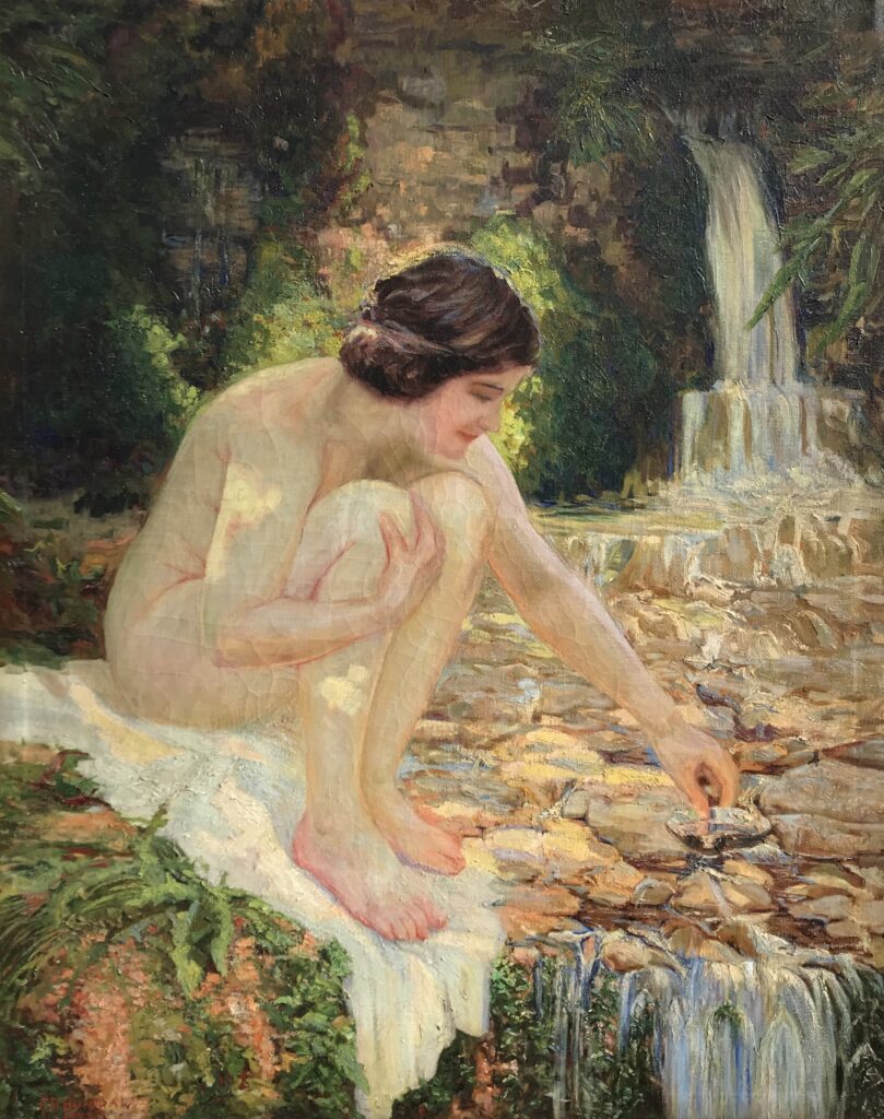 Frank Humpal Nude By the Stream Sold Oil on canvas 50 x 40 inches