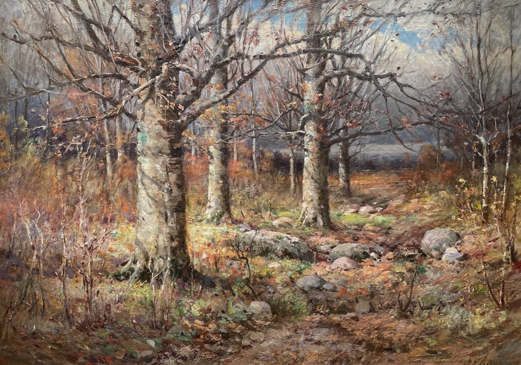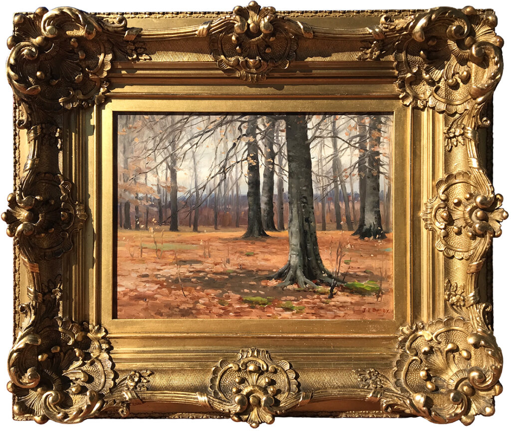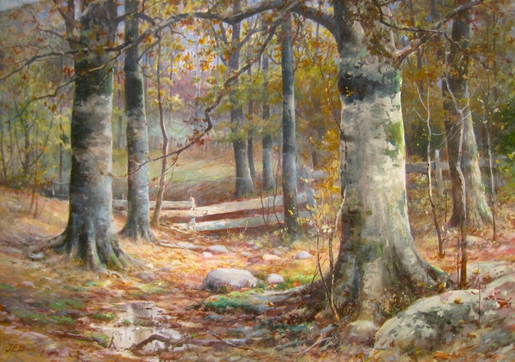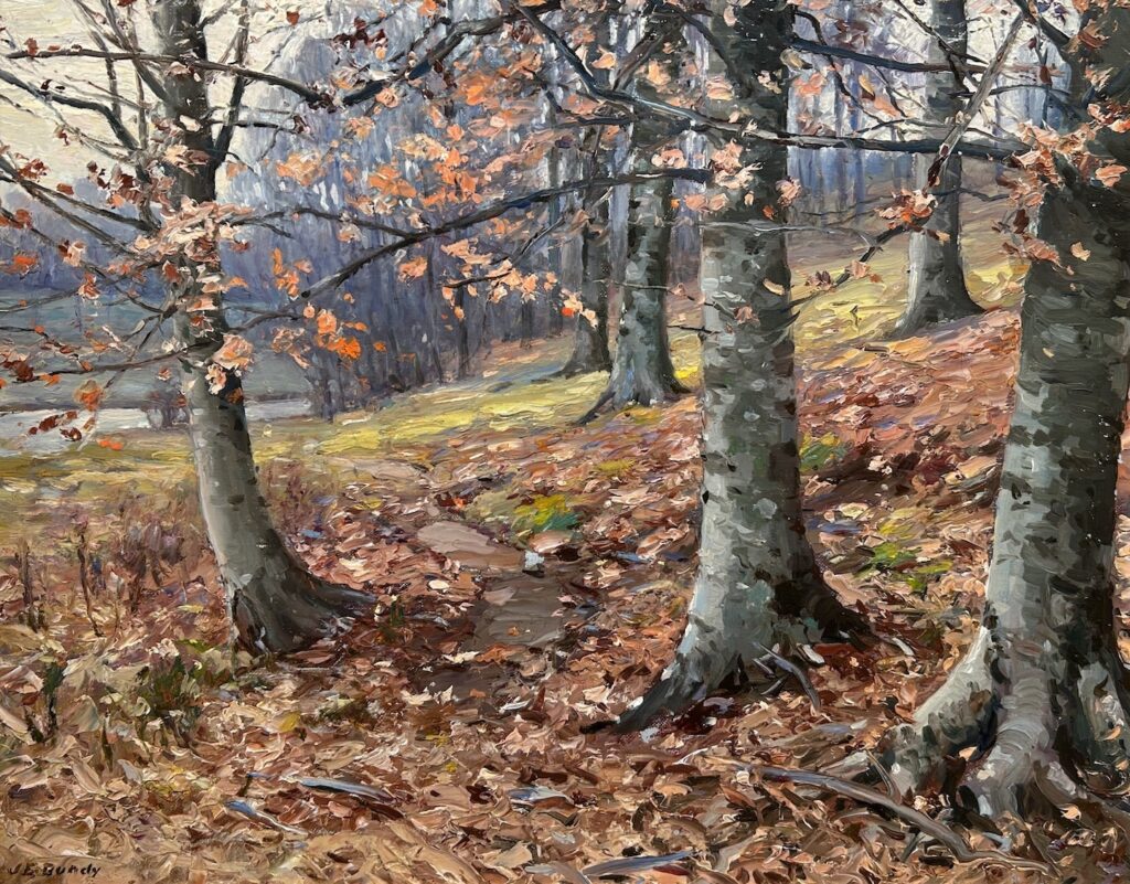 John Elwood Bundy Beech Woods in Autumn Sold Oil on board 9 x 12 inches