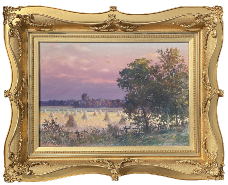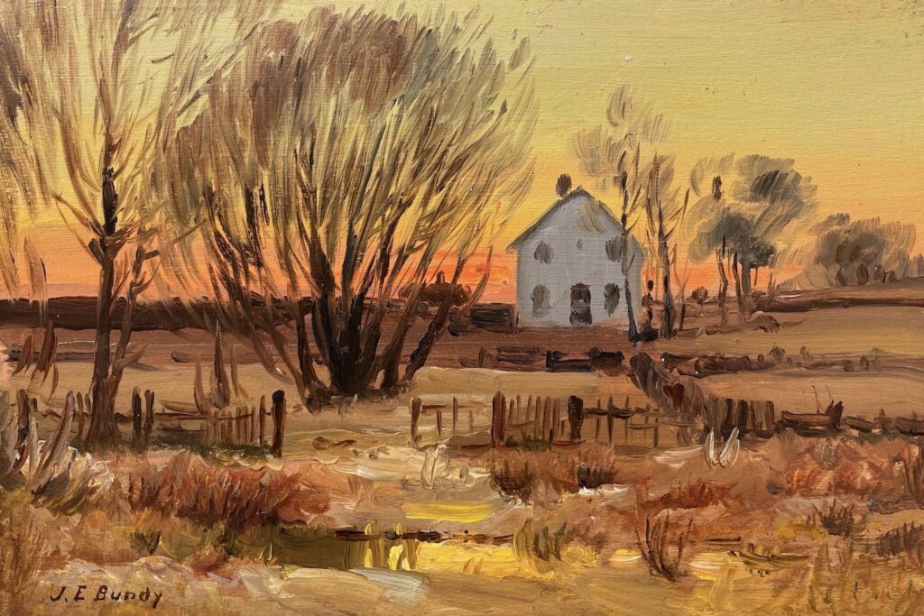 John Elwood Bundy Sunset on the Farm Sold Oil on board 6 x 9 inches