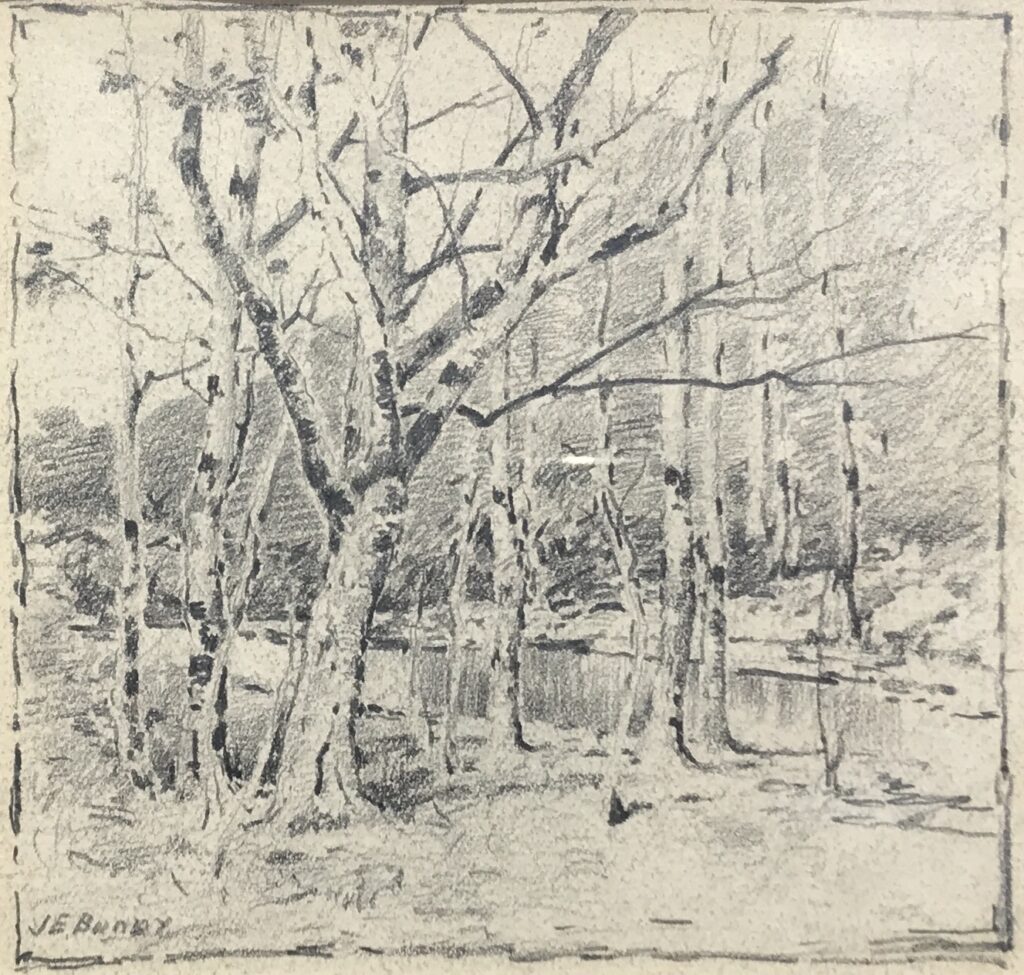 John Elwood Bundy The Quiet Stream Sold Graphite on paper 5 x 5 inches