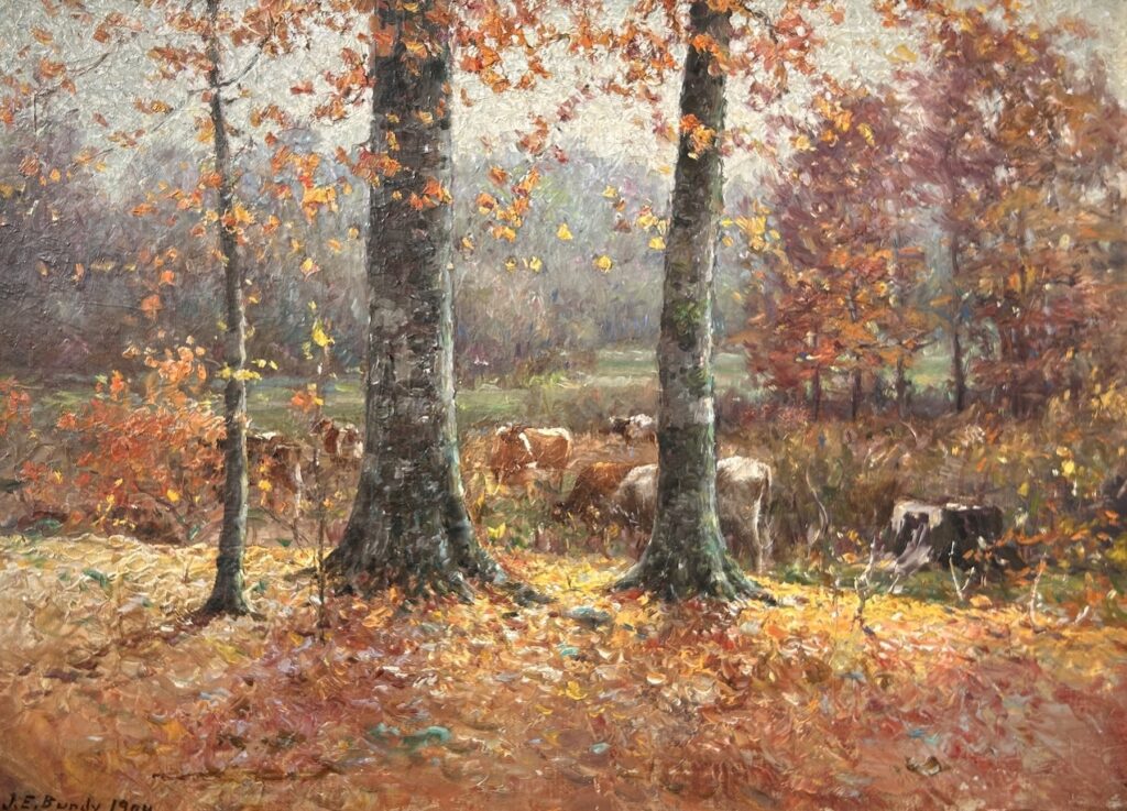 John Elwood Bundy Cows in Autumn Sunlight Sold Oil on canvas 16 x 22 inches