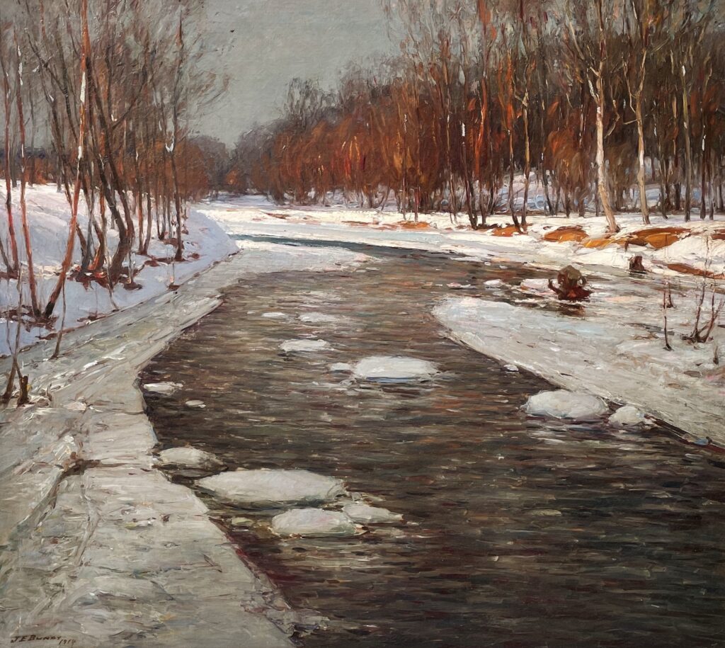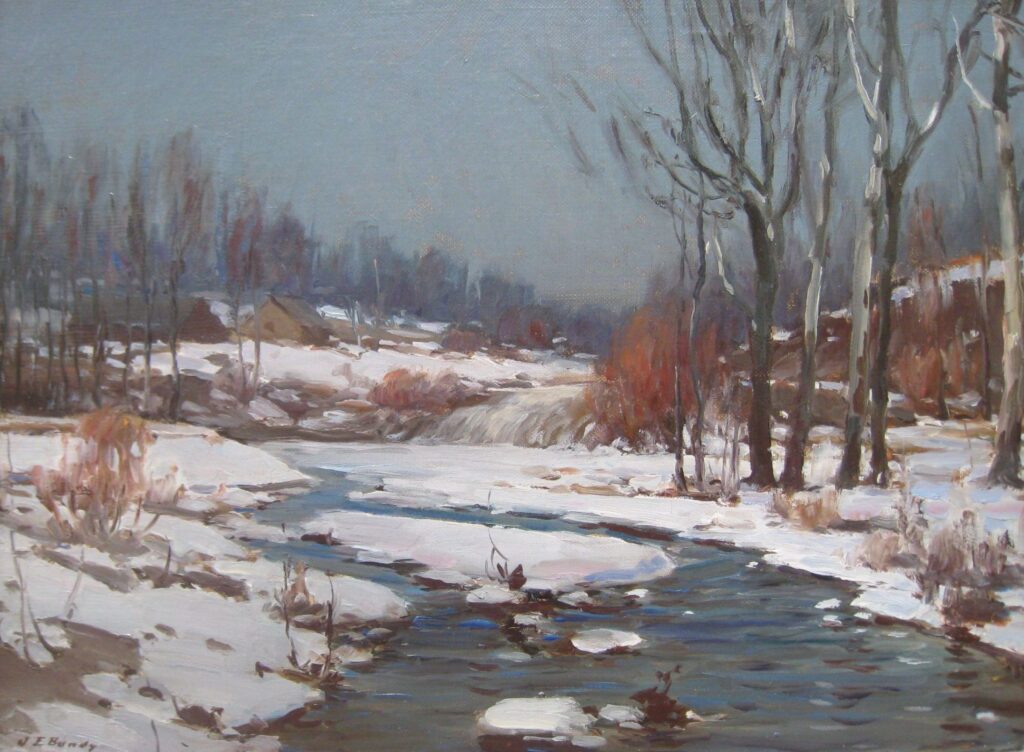 John Elwood Bundy Winter on the Whitewater Sold Oil on canvas 36 x 40 inches