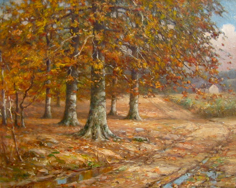 John Elwood Bundy Autumn Lane Sold Oil on canvas 16 x 20 inches