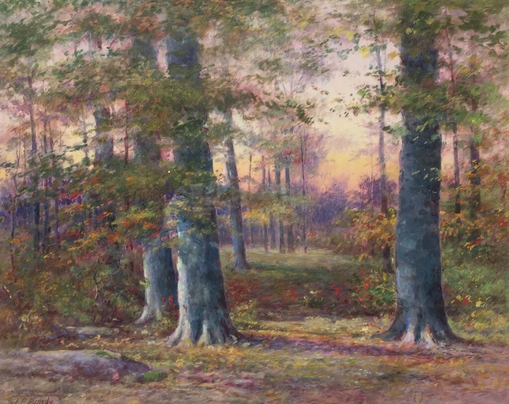 John Elwood Bundy Sunset Through the Beeches Sold Watercolor and gouache on paper 16 x 20 inches