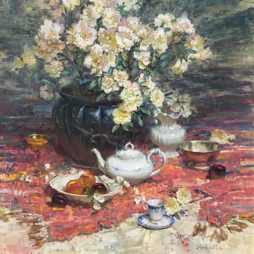 John Michael Carter Filled Azaleas Oil on linen 36 x 36 inches