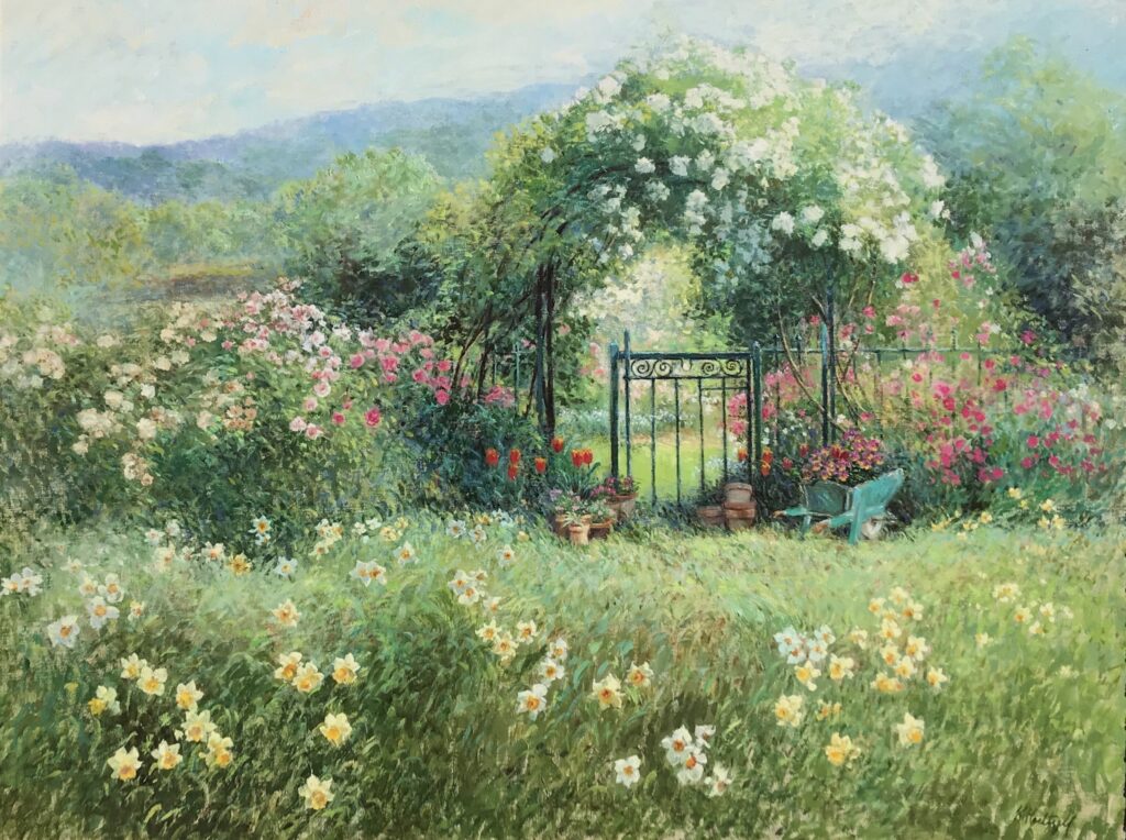 Kaethe Hoeltzell Hillside Rose Garden Oil on linen 30 x 40 inches