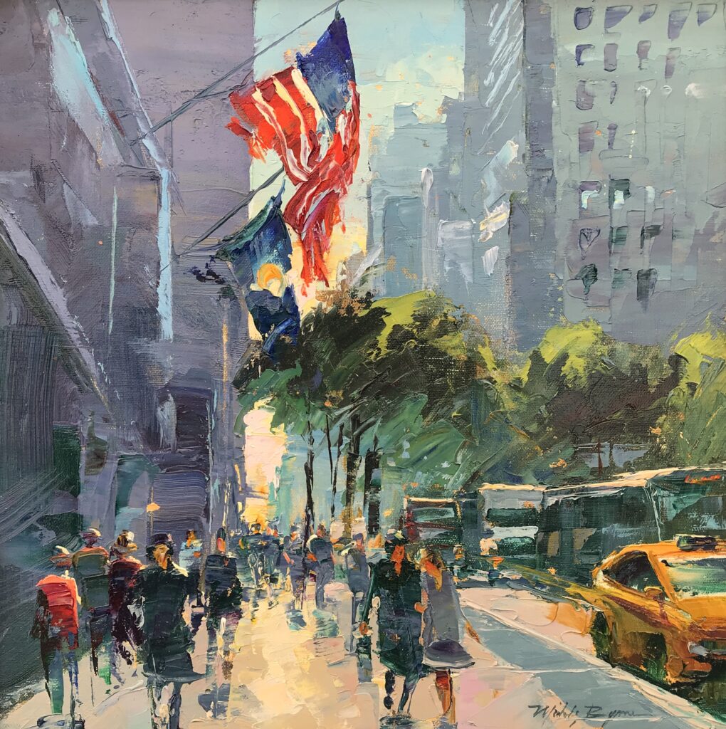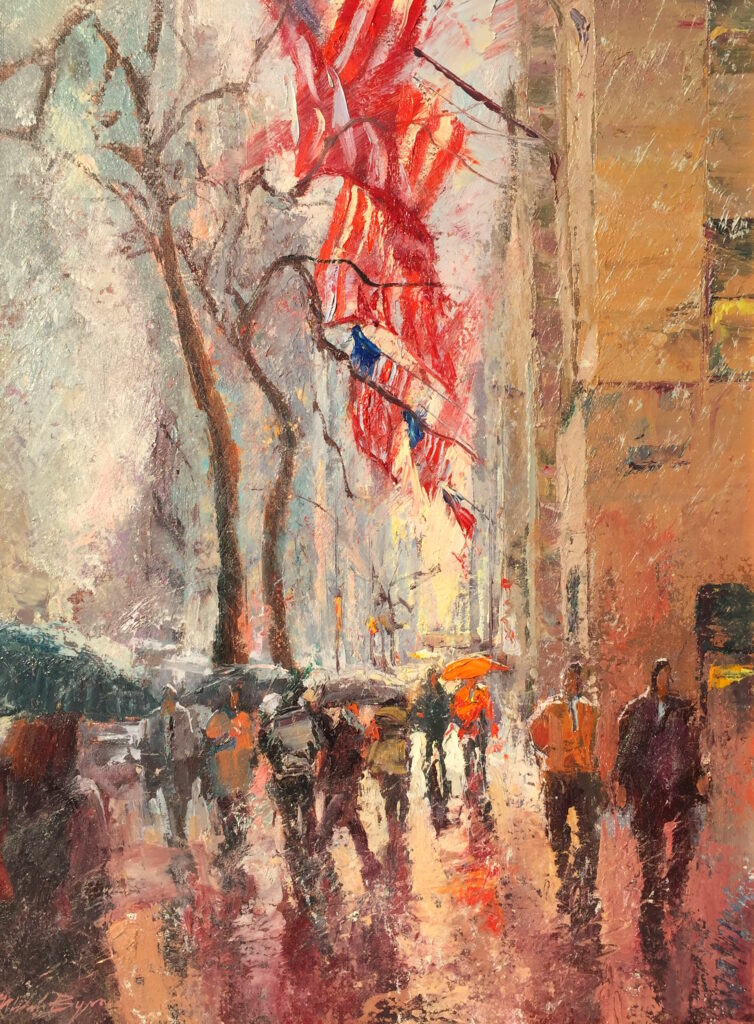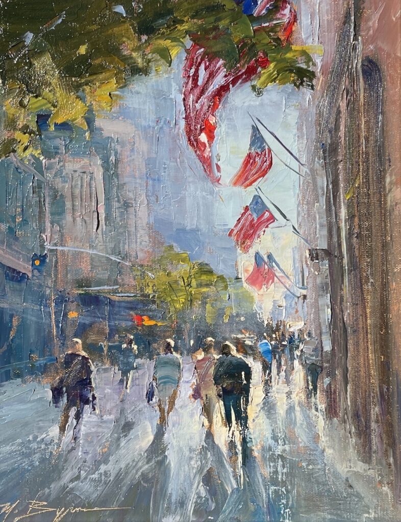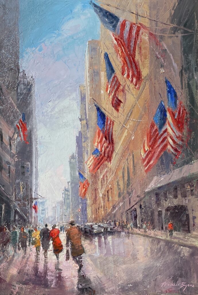 Michele Byrne Fifth Avenue Furling Flags Sold Oil on canvas board 16 x 12 inches