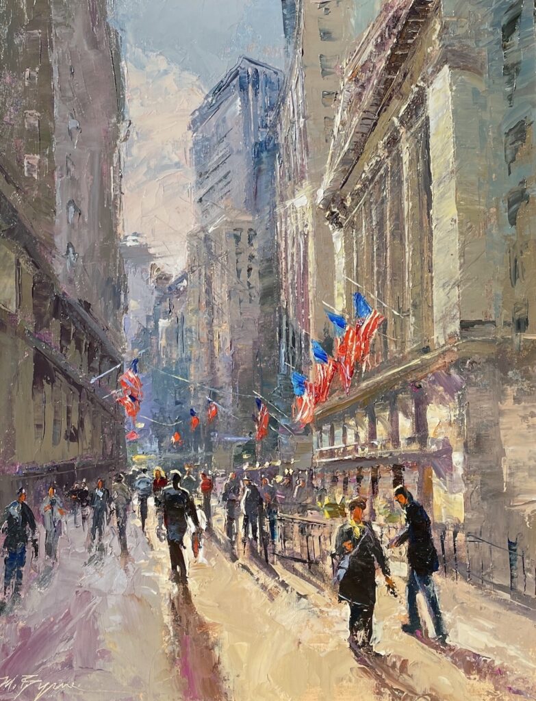 Michele Byrne Sunlight on Wall Street Sold Oil on linen 16 x 12 inches