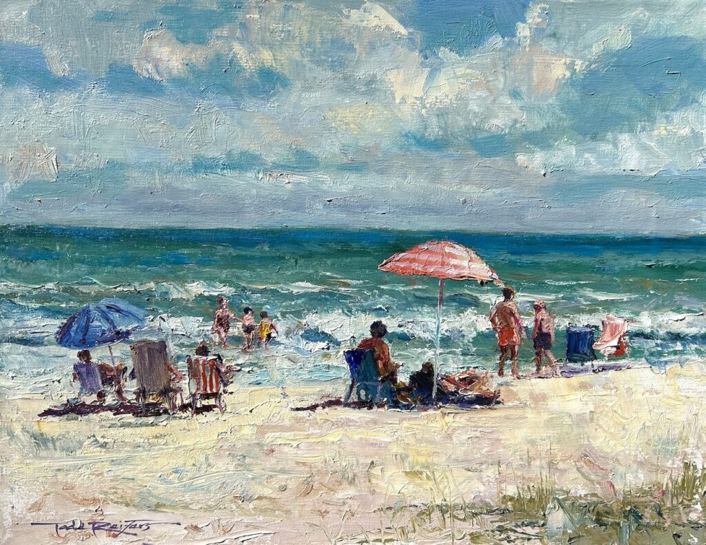 Todd Reifers Busy Beach Oil on linen 11 x 14 inches