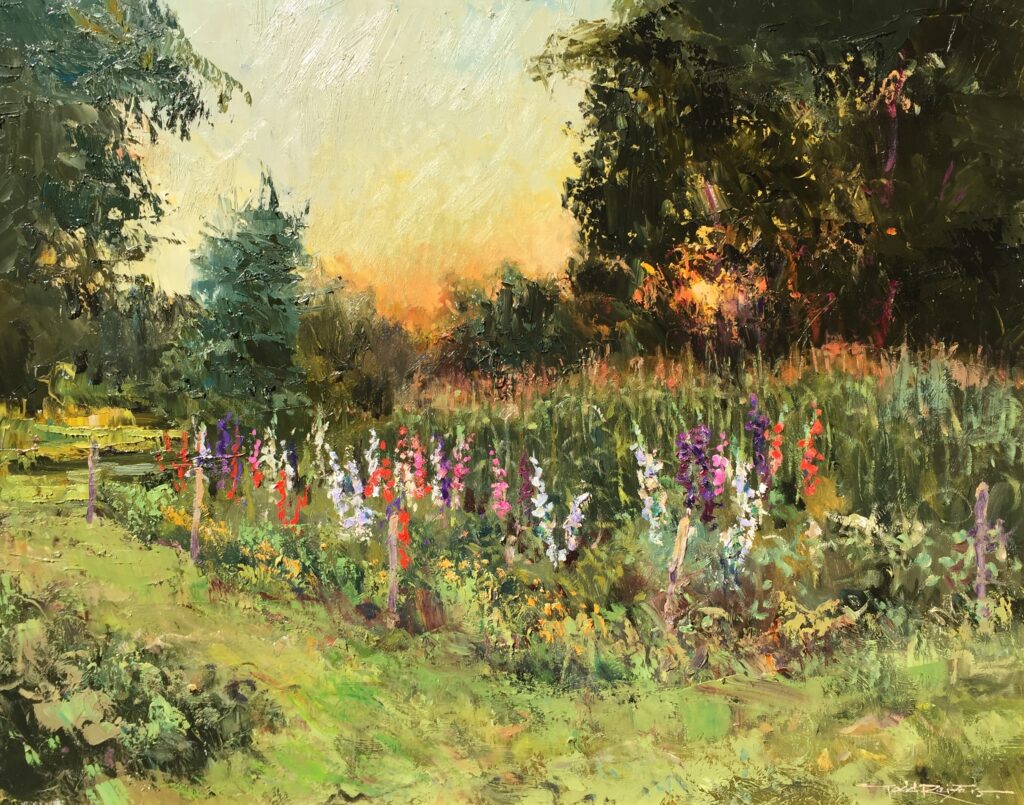 Todd Reifers Gladiola Garden, Evening Light Oil on linen 24 x 30 inches