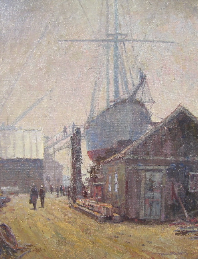 Todd Reifers Foggy Day at the Shipyard Oil on jute 28 x 22 inches