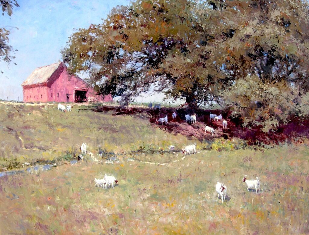 Todd Reifers Goats in the Meadow Oil on linen 36 x 48 inches