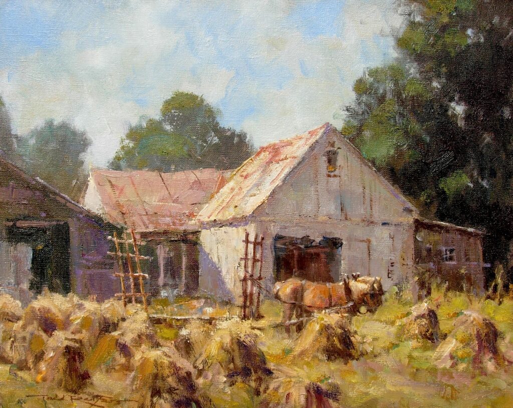 Todd Reifers Hay Wagon with Horse Team Oil on linen 16 x 20 inches