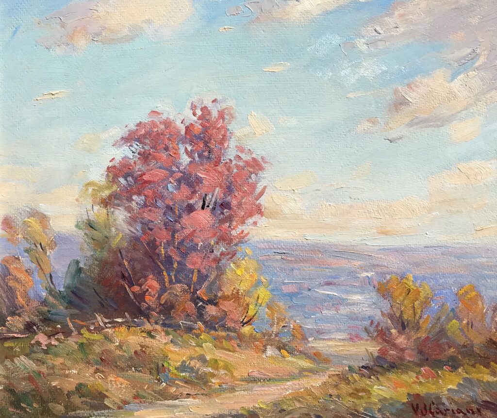 V. J. Cariani Autumn Splendor Sold Oil on canvas laid on board 12 x 14 inches