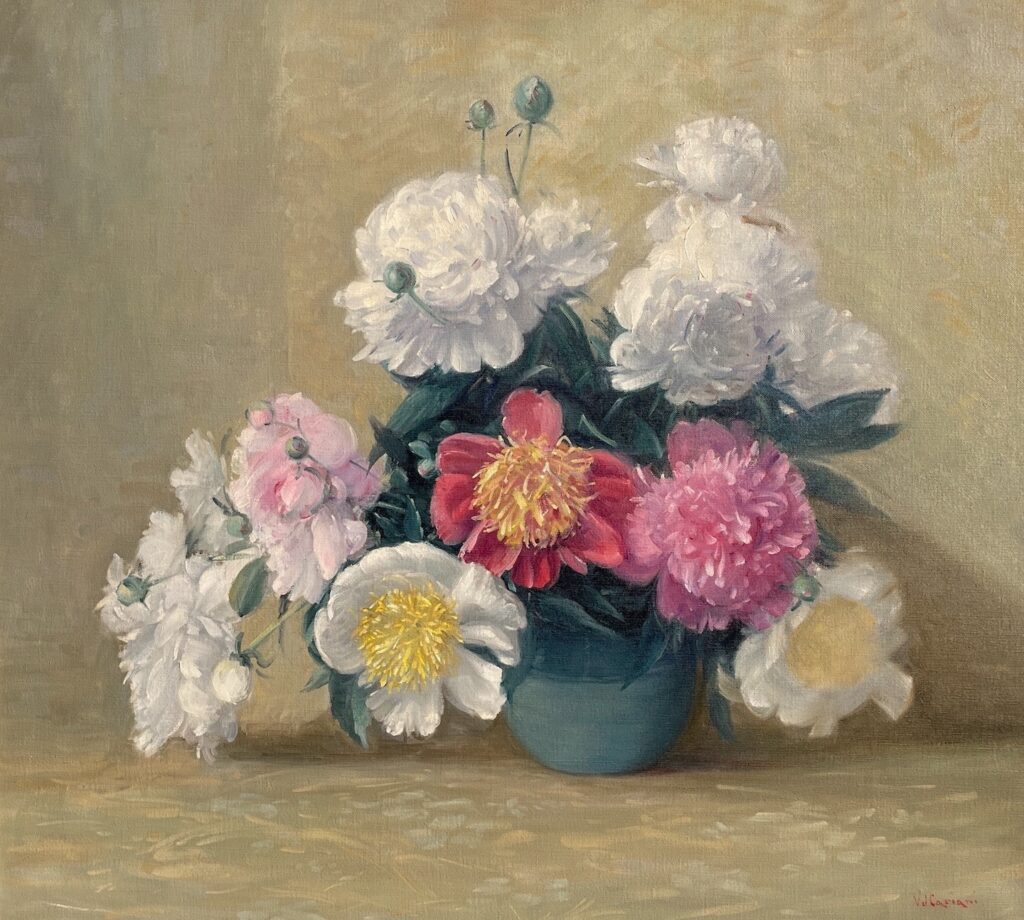V. J. Cariani Peonies Sold Oil on canvas 32 x 36 inches