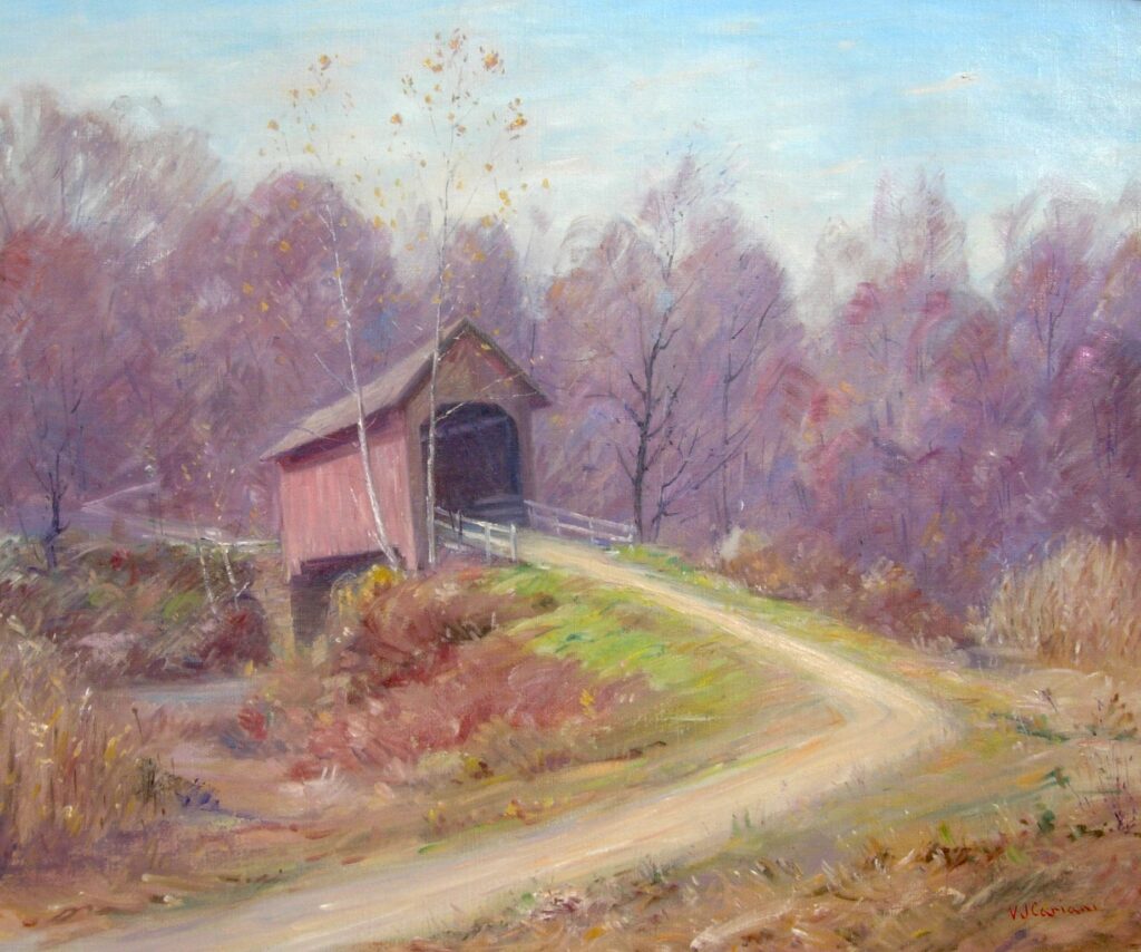 V. J. Cariani Old Covered Bridge Sold Oil on canvas 25 x 30 inches