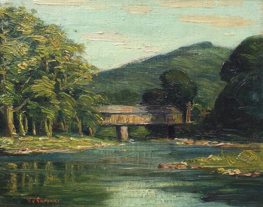 V. J. Cariani The Covered Bridge Sold Oil on board 8 x 10 inches