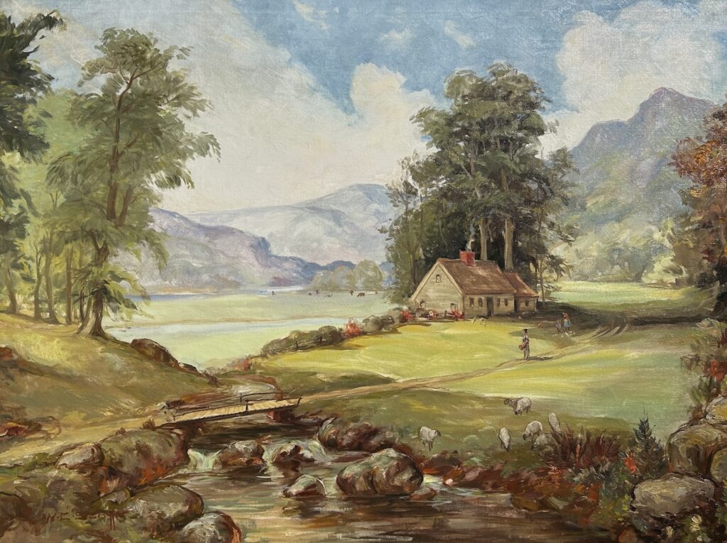 William Edouard Scott Pastoral Landscape Sold Oil on canvas 30 x 40 inches