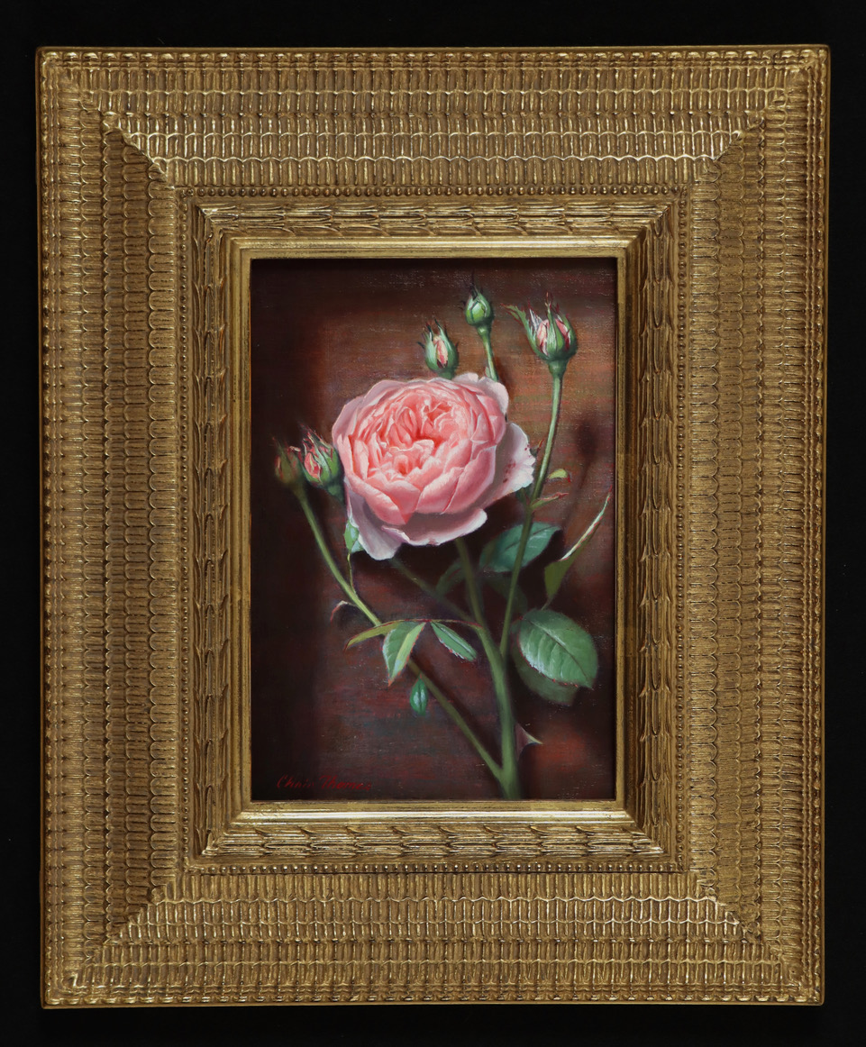 Superior quality 22K gold gilt frame. The subject is an English Rose from the artist's own garden.