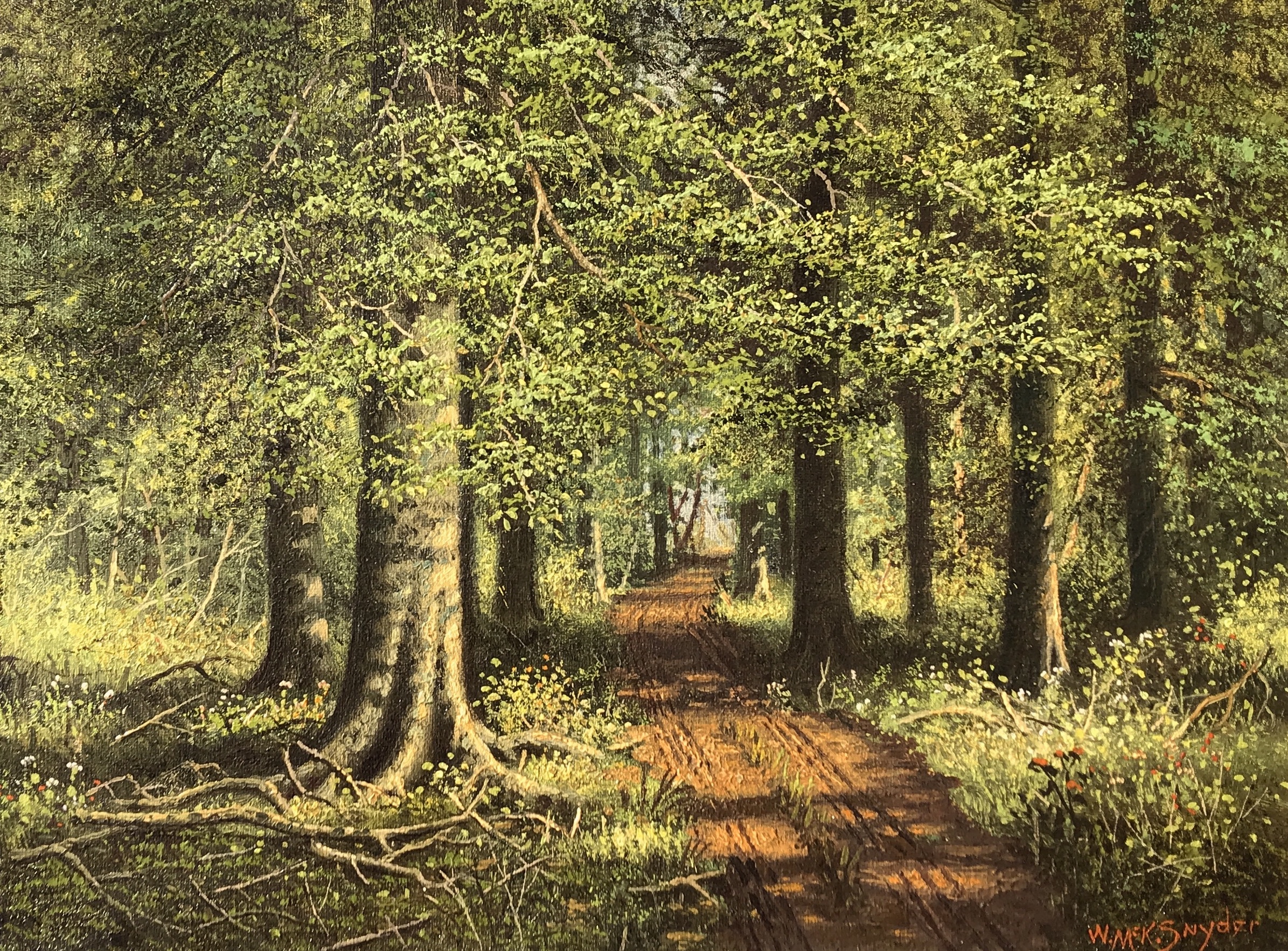 William Traxel (Gallery), Cincinnati, Ohio, label verso. Excellent condition, original frame. Summer subjects are rare for the artist.