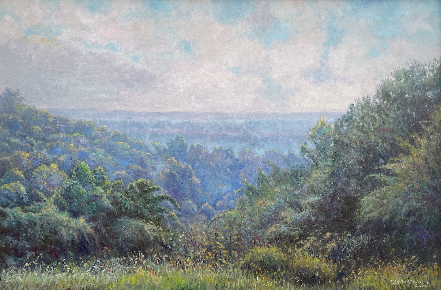 From the artist: "The dense fog of September 2nd, 2019 provided the setting for this picture. It was one of my favorite mornings in the park. As the day progressed, the sky began to reveal more blues and creams, while the foreground trees and grasses introduced warm greens and ochres."