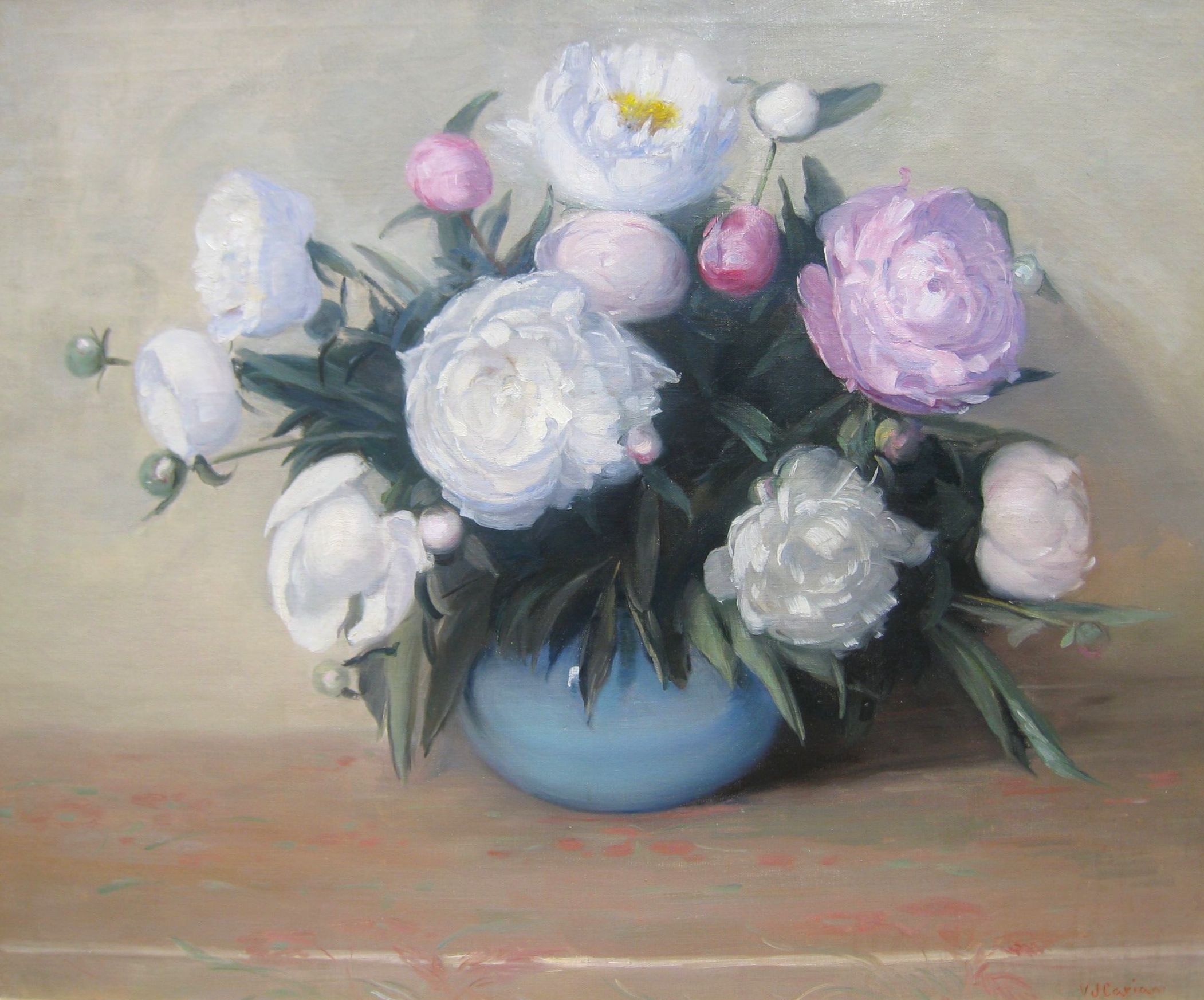 Peonies in Blue Vase