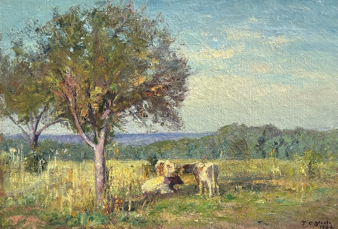 Good condition, superior quality period-style hand carved 22K gold gilt frame. A fine example of the artist's Brown County period.