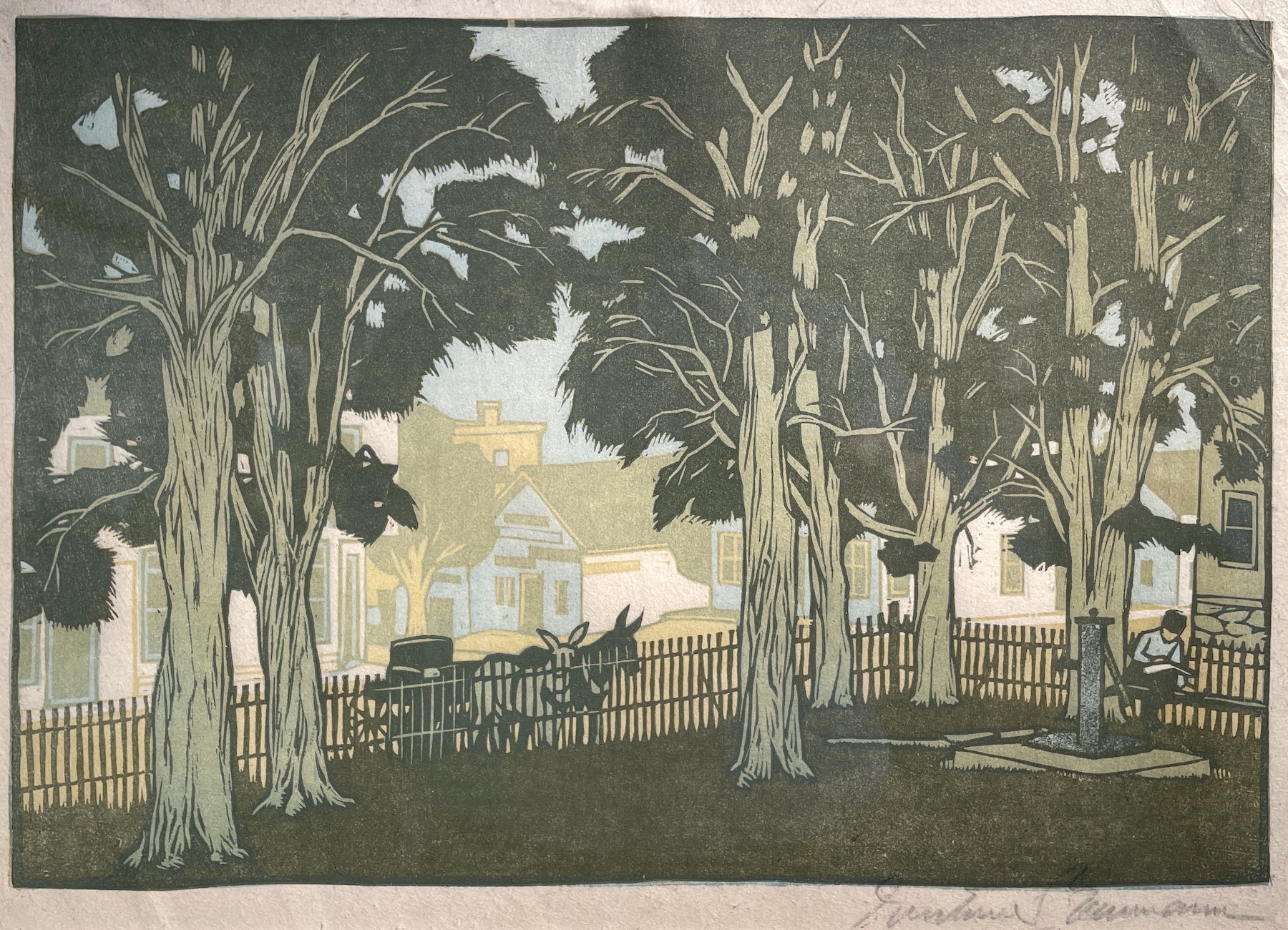 Exhibited: "Fifteenth Annual Exhibition of Works by Chicago Artists," Art Institute of Chicago, Chicago, Illinois, January 31–February 26, 1911; "Fourth Annual Exhibition of Works by Indiana Artists," John Herron Art Institute, Indianapolis, Indiana, May 6–June 4, 1911; "Gustave Baumann: Brown County Prints," Palette & Chisel Club, Chicago, Illinois, April 21–May 3, 1913; "Panama-Pacific International Exposition," San Francisco, California, February 20–December 4, 1915; "Gustave Baumann Woodblock Prints and Woodblocks," John Herron Art Institute, Indianapolis, Indiana, March 20–April 26, 1925; "Sixth Annual Hoosier Salon: Invitational: Gustave Baumann," Marshall Field Picture Galleries, Chicago, Illinois, January 27–February 12, 1930; "Gustave Baumann: A Retrospective Exhibition of Color Wood Cuts," Museum of New Mexico Art Gallery, Santa Fe, New Mexico, June 8–July 27, 1952; "Gustave Baumann, 1881-1971," Museum of New Mexico Art Gallery, November 19, 1972–January 23, 1973; "The American West at CSU: Baumann Retrospective," Morgan Library, Colorado State University, July 15–October 15, 1973; "Gustave Baumann (1881-1971)," Indianapolis Museum of Art, Indianapolis, Indiana, 1978; "Gustave Baumann: Hands of a Craftsman, Heart of an Artist," Museum of Fine Arts, October 2, 1993–April 17, 1994 (exhibition traveled to New York in 1995, to Palm Springs, Cleveland, and Colorado Springs in 1996, and to Lubbock, Texas, in 2000); "Color Woodblock Prints: Selections from the Two Red Roses Foundation Collection," Leepa-Rattner Museum of Art, St. Petersburg College, Tarpon Springs, Florida, November 2, 2008–January 4, 2009.