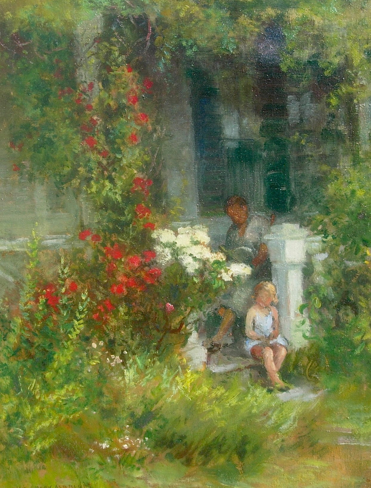 Artist's inventory no. 895 (written verso). According to the artist's ledger, this painting was painted between June 1 and October 1, 1948, in Walpole, Maine. Good condition, and with a superior quality period-style French Impressionist frame in 23K gold gilt (Richard Tobey, Los Angeles, maker).