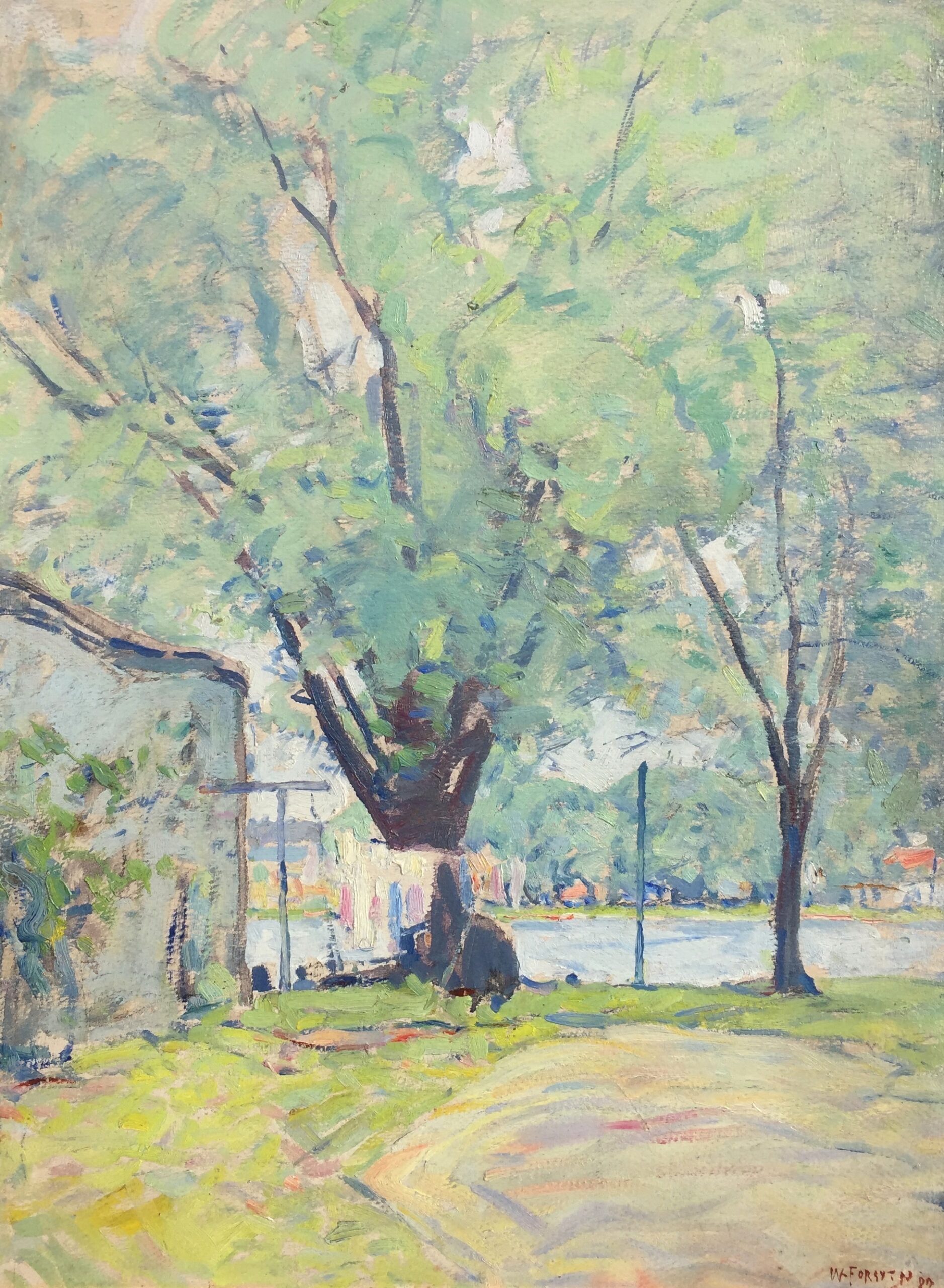 A beautiful work by the Hoosier Group artist and John Herron Art Institute professor. Completed during the artist's tenure as fine arts instructor at Herron's summer classes at Winona Lake in northern Indiana. Excellent condition, recently cleaned. It is rare that a painting illustrated in "The Hoosier Group" book (as this is) is priced in this range. A very fine value!